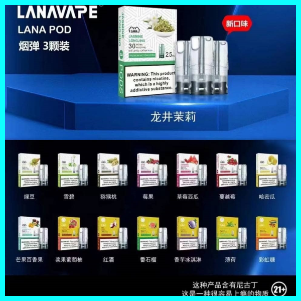 LANA 推出的1代電子煙煙彈,擁有2.5mL容量、3%尼古丁濃度,並搭配透明外殼與隨機LED燈光效果,為吸食過程增添更多樂趣。支援通用一代電子煙主機,兼容性廣泛,使用方便。